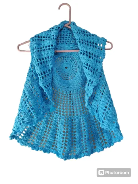 Blusa de tejido para Dama. Blusa de tejido para Dama en color azul con cuello, se puede usar abierto y cerrado, talla mediana, sin marca.