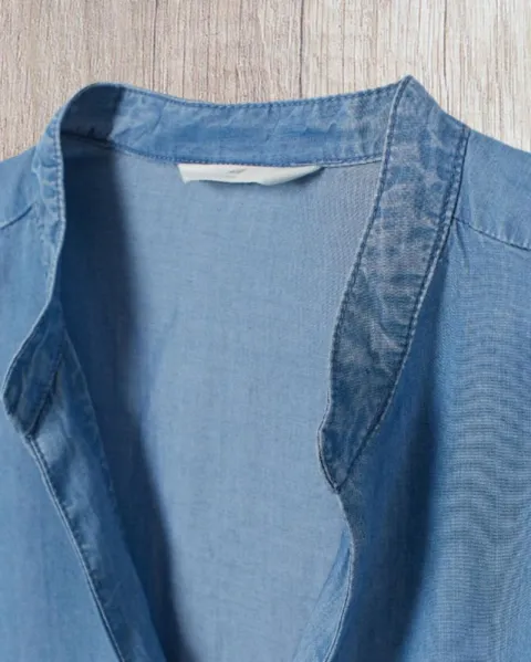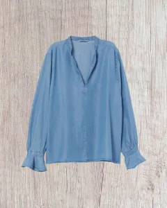 Blusa de Tencel Iyocell. Blusita H&M Tencel en tela de color mezclilla con olanes en las mangas, totalmente nuevecita y va con todo y etiquetas