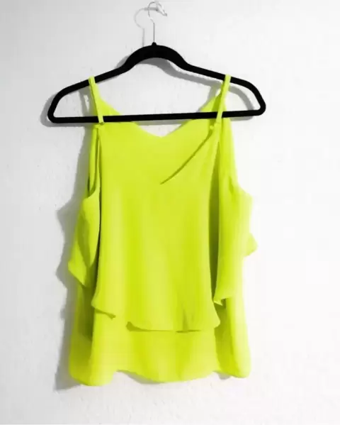 Hermosa blusa de tirantes de Chifon, queda desde talla G a XL. Es muy fresca, perfecta para clima cálido. Sin ningún detalle.