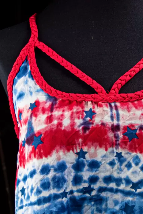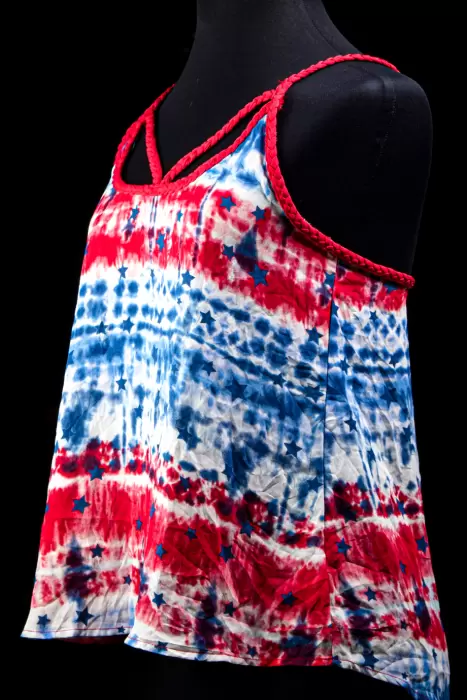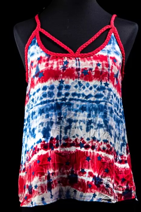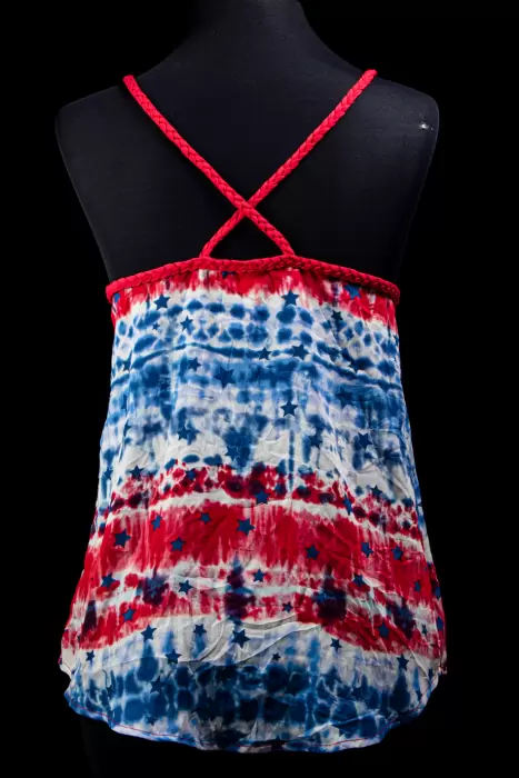 Blusa de tirantes. Coqueta blusa de tirantes en color rojo, azul y blanco. Los tirantes son distintivos, se ven muy lindos ya puesta la blusa. perfecta para look casual. Es muy original. Es talla M, pero la recomiendo más para una S. Mide 41 cm de axila a axila y 66 cm de largo.