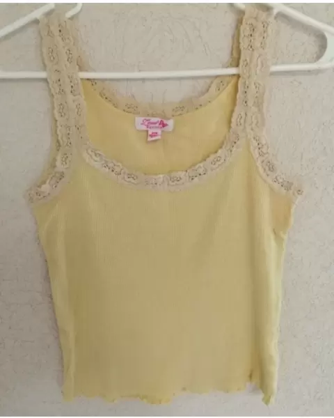 Linda blusita amarilla de tirantes, color amarillo, tiene encaje en el cuello y los tirantes. Ideal para el verano 😍