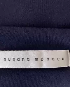 Blusa de tirantes cruzados Susana Monaco. Blusa de tirantes cruzados en la espalda color azul profundo/morado. Queda pegado, la tela es suave, es corte princesa y queda ajustada al busto y luego abre un poco, línea A.Talla: XSMedidas: 32 cm de axila y 38 cm de largo desde la espalda.