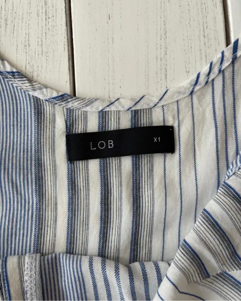 Blusa de tirantes LOB. Talla: XS, blusa con tirantes ajustables, escote en V, se abotona al frente, a rayas azules, muy fresca y ligera, medidas: 38 cm de axila y 32.5 cm de largo.