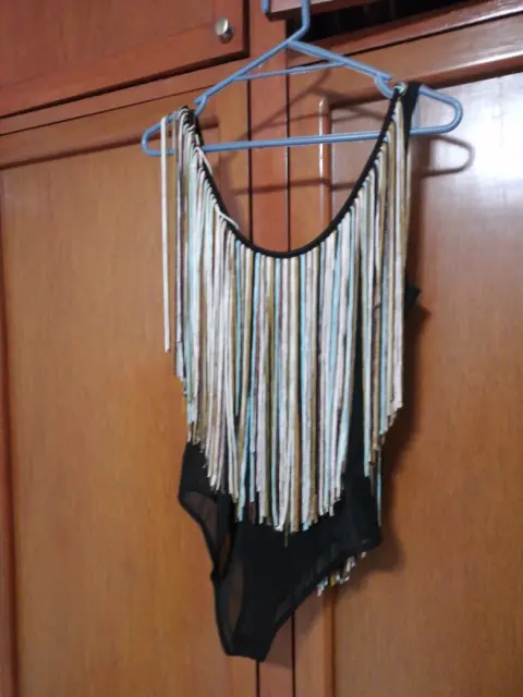 Blusa casual tipo leotardo ya que se abrocha por abajo, transparente con hilos,