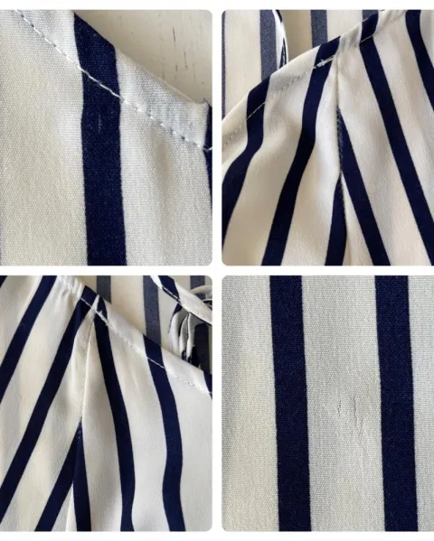 Talla: CHA rayas azul con blanco, fresca tirantes ajustables y la espalda descubierta, la parte de atrás queda más largo.Medidas: 35 cm de axila aproximadamente.