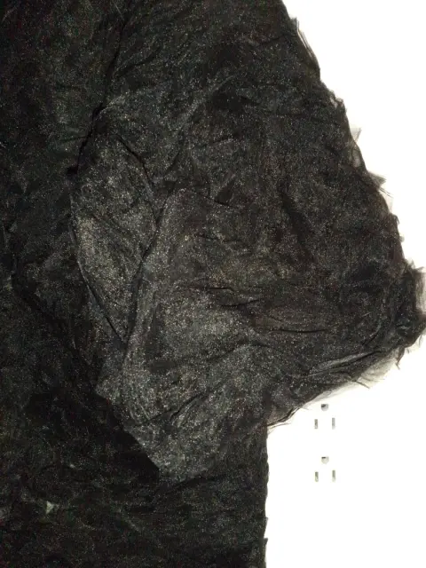 Blusa de vestir elegante Tella transparente tipo organza con pequeños pliegues de olanes en toda la blusa , negro satín