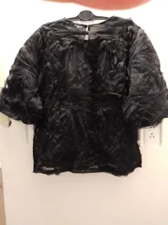 Blusa de vestir elegante. Blusa de vestir elegante Tella transparente tipo organza con pequeños pliegues de olanes en toda la blusa , negro satín