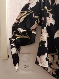 Blusa de vestir estampada. Blusa de vestir estampada, de flores , escotada de hombros , con resorte ,manga 3/4 con detalle de amarre ,