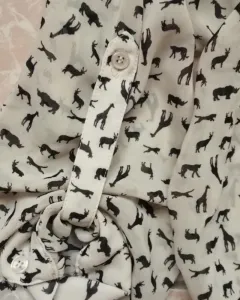 La manga se puede hacer 3/4, la tela tiene una ligera transparencia, super cómoda y frescaLa parte trasera de la blusa es un poco más larga