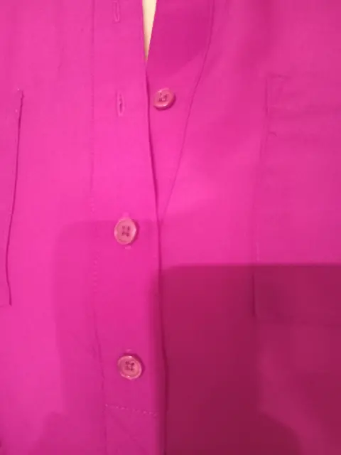Blusa delgada magenta. Hermosa blusita super ligerita y fresca de color magenta. Esta supee bonita, tiene botoncitos en escote y bolsitas en frente. Medidas hombros 38 cm, ax a ax 52 cm, largo 56 cm.
