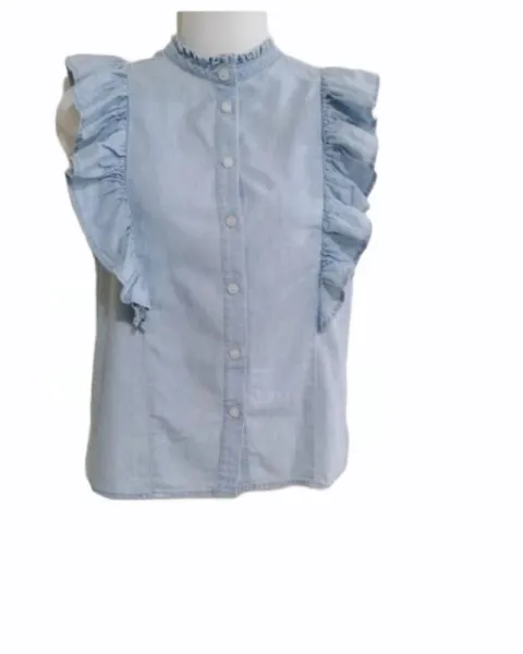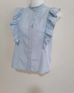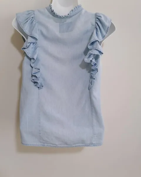 Blusa denin light con olanes. ❇️visita el resto de mi closet hay prendas super lindas, Si te gustaron varias prendas puedes armar tu paquete & MEJORAMOS considerablemente el precio ❇️✨HACEMOS ENVÍOS DIARIO✨ Bellísimo diseño, Es el modelo indicado para toda ocasión, super tendenciaTalla M, marca denmin, medidas de axila a axila 38, largo 56