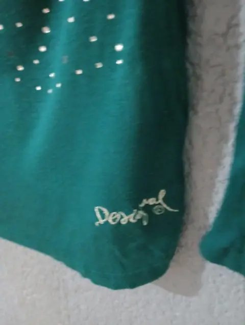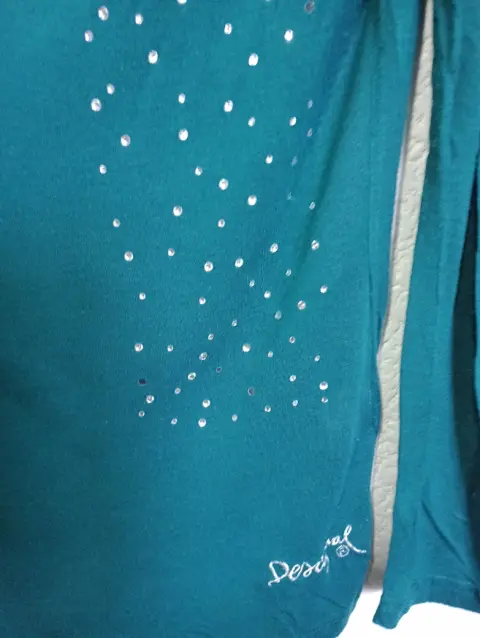 Blusa Desigual confeccionada en viscosa, muy delgadita en talla chica, le faltan algunas aplicaciones