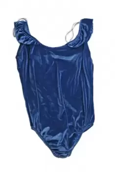 Blusa do y azul tipo terciopelo Talla L. Blusa body azul tipo terciopelo con volados en el escote y tirantes gruesos con broches en la parte baja, super Linda.