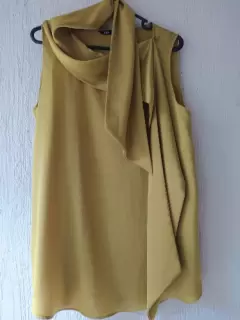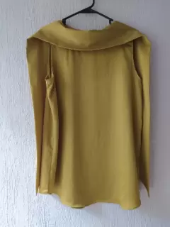 Blusa dorada con liston. Hermosa blusa dorada con liston que se puede usar de varias formas, tela suave y cómoda, viene larga y ancha. Es S pero le quedaría a una M.