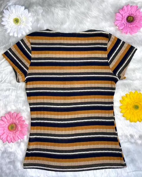 ✨𝐍𝐔𝐄𝐕𝐀✨ Hermosa blusa a rayas! Tejida, en tonos mostaza, verde olivo, azul y beige con destellos dorados 🌟 en perfecto estado! A estrenar 😉 Marca: ʜɪɢʜ sᴛʀᴇᴇᴛManga corta, cuello V, talla SSe te va a ver increible! Llevatela!Dale a esta prenda un 𝟐𝐧𝐝 𝐜𝐡𝐚𝐧𝐜𝐞! ✌🏼😉𝑌 𝑟𝑒𝑐𝑢𝑒𝑟𝑑𝑎...“𝑃𝑜𝑛𝑡𝑒 𝑓𝑒𝑙𝑖𝑧!𝑝𝑜𝑟 𝑞𝑢𝑒 𝑔𝑢𝑎𝑝𝑎 𝑌𝐴 𝐸𝑆𝑇𝐴𝑆!“ 💅🏼