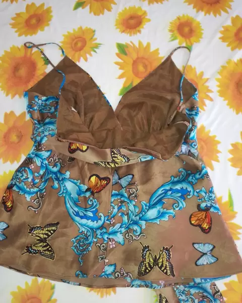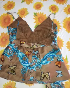 Hermosa blusa de tirantes,con dibujos de mariposa,fresca ,fina y elegante.