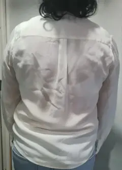 Blusa blanca/hueso muy cómoda, sin detalles, talla S, no es muy elástico por lo que solo queda en talla S/38, sobre todo en el hombro y brazo, es larga llega debajo de la cintura, la manga de hombro a puño mide 52 cm