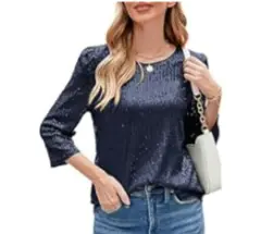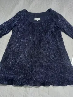 Hermosa blusa azul marino forrada, elegante brilla hermoso y discretamente la tela de excelente calidad hermoso color manga 3/4 talla 34 mide de axila a axila 51 cm estira, largo desde hombro 65 cm