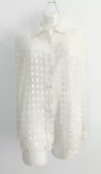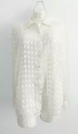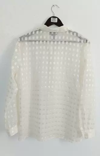 Hermosa, elegante y formal.Sin detalles y en perfecto estado.Talla LNo tiene strech.Tela tipo seda y transparente. Con aberturas a los costados.De axila a axila: 57 cmHombros: 43 cmLargo: 70 cm