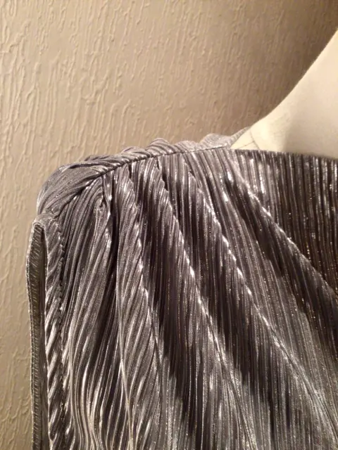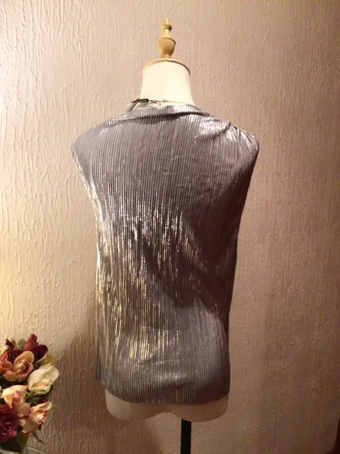 BLUSA MARCA CALVIN KLEIN, TALLA XS, STRECH, PLATEADA CON ETIQUETA SIN MANGAS CON PLIEGUES EN UN COSTADO, FRESCA, TELA SUAVE, CUELLO DE OJAL COMBINABLE CON PANTALÓN, FALDA ETC.