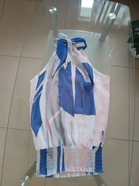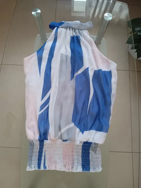 Blusa tela tipo gasa fresca y ligera con forro, puesta una sola vez, resorte en cintura