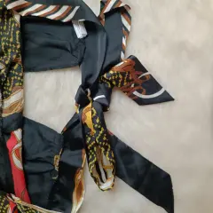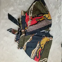 Blusa elegante negra. ¡Misteriosa y cool! Blusa negra con detalles de colores y cadenas, talla G. ¡Comprala ya y lleva el estilo al siguiente nivel! ️✨