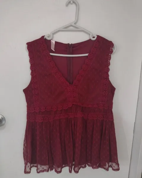 Blusa en v. Linda blusa en v muy cómoda y amplia la tela es super fresca en la parte de abajo trae una tela transparente y por la parte de abajo un forro para que no se transparente los detalles de la parte de arriba la asé ver muy juvenil y fresca en la parte de atrás trae un cierre para fáciitar ponerla está súper linda.