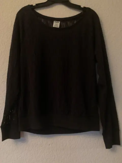 Blusa negra encaje, manga larga, cuello redondo, marca VS pink, talla M
