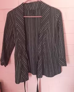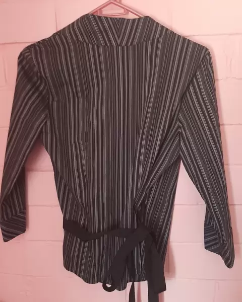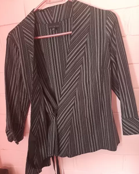 Blusa envolvente. Blusa envolvente, de color negro, con gris, tipo de manga 3/4.