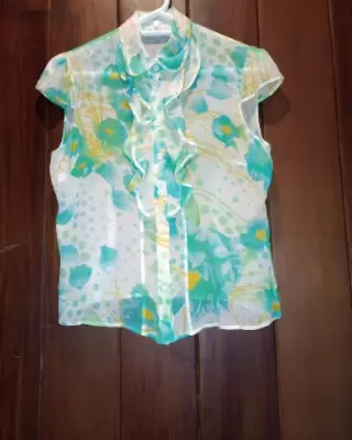 Blusa "Escada" original floreada con olán en cuello, sin mangas Talla 38$1,200