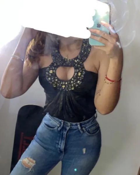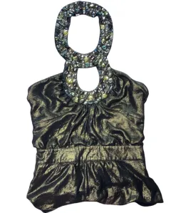 Blusa escotada bebe. Hermosa blusa de pedrería, con espalda escotada esta increíble, en la foto donde se luce puesta luce increíble por dentro del pantalón, muy poco uso, sin detalles