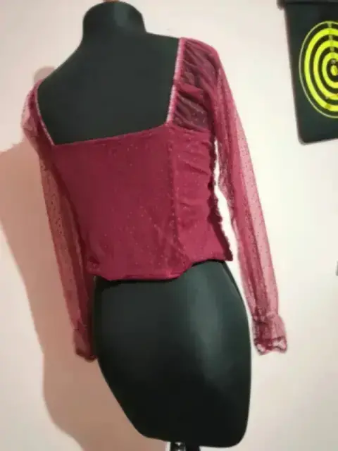 Blusa escote corazón color vino. Blusa color vino se transparenta solo de mangas, no tiene detalles, la tela es stretch da entre una talla 32-34mx, la tela es suave no raspa