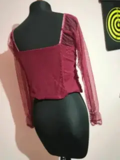 Blusa color vino se transparenta solo de mangas, no tiene detalles, la tela es stretch da entre una talla 32-34mx, la tela es suave no raspa