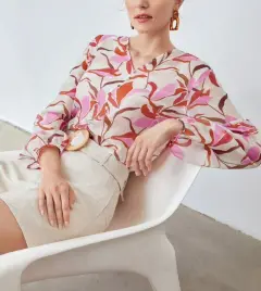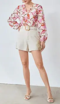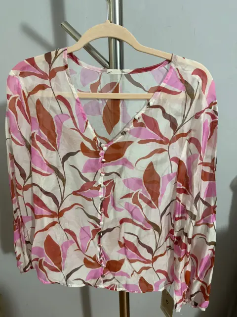 Hermosa blusa estampada con botones, de la línea MOTF de SHEIN, etiquetada como XS, pero viene amplia