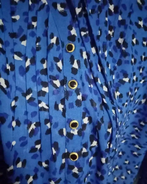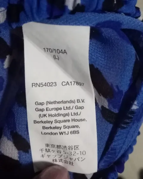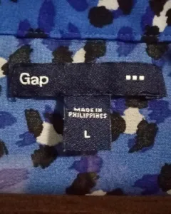 Blusa estampada GAP. Blusa GAP, es olgada y fresca. Tiene todos sus botones y es de cuello redondo con listones para abrochado con moño.. En la cintura tiene elástico!!