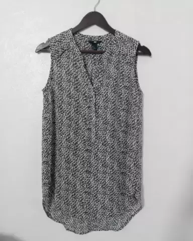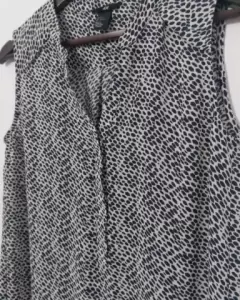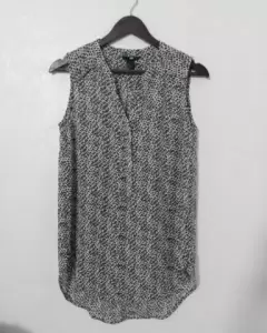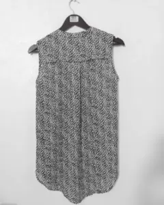 Blusa estampada sin mangas. Linda blusa en tono marino con blanco, sin mangas, luce padre tanto con jeans como pantalón de vestir y puedes agregar un saco para lucir formal. Tela 100% poliéster.Trae un botón de repuesto