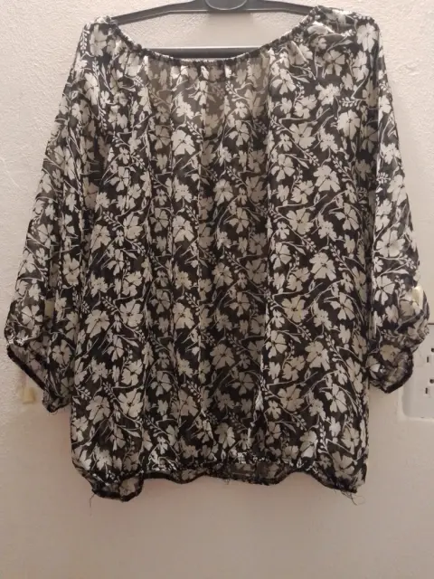 Blusa estampada tela transparente , ligera, con resorte en la parte de abajo, manga 3/4 , en buen estado