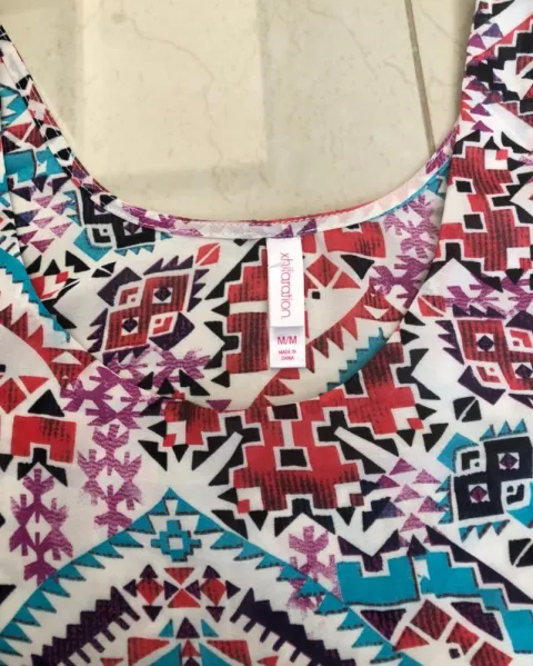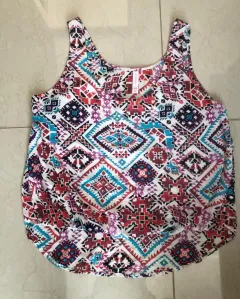 Camiseta de dama con estampado lde colores, talla M pero viene reducida, es talla M (viene reducida), y tiene resorte en la parte de enfrente y atras es larga, es totalmente nueva,