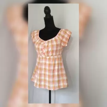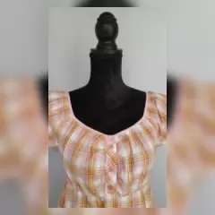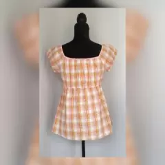 Blusa estilo Campesino corte Imperio. Blusa estilo campesino en tonos ROSAS/NARANJAS/BLANCO e hilo metalizado color PLATA, cuello redondo, elástico en cintura p/mejor ajuste y manga cap. Talla 11 (REDUCIDA, da mejor a 7). Dimensiones cms: 37 hombro, 39 axila, 33 cintura (da hasta 47), 59 zona baja, 58 largo, 5 largo manga. 95% algodón, 2% lurex, 3% spandex. P/lavado en casa.***NUEVA, LE QUITE LA ETIQUETA P/USARLA Y NO ME QUEDÓ***El hilo metalizado le da un detalle muy bonito***