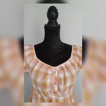 Blusa estilo campesino en tonos ROSAS/NARANJAS/BLANCO e hilo metalizado color PLATA, cuello redondo, elástico en cintura p/mejor ajuste y manga cap. Talla 11 (REDUCIDA, da mejor a 7). Dimensiones cms: 37 hombro, 39 axila, 33 cintura (da hasta 47), 59 zona baja, 58 largo, 5 largo manga. 95% algodón, 2% lurex, 3% spandex. P/lavado en casa.***NUEVA, LE QUITE LA ETIQUETA P/USARLA Y NO ME QUEDÓ***El hilo metalizado le da un detalle muy bonito***