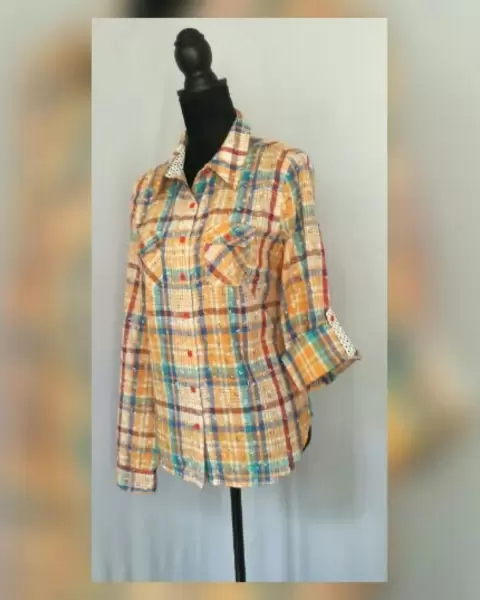 Blusa estilo Shorts mod "Floreada". Blusa estilo Shirt c/estampado de flores miniatura y tonos multicolor, cuello clásico c/solapas, cierre p/botonadura frontal, 2 bolsos frontales plastrón c/solapa, manga terminada en puño y tira para convertir a 3/4. Talla G. Dimensiones cms: 40.5 hombro, 52.5 axila, 51 cintura, 55 zona baja, 66 largo, 67.5 largo manga. 100% algodón. P/lavado en casa.***Esta marca maneja prendas de extraordinaria calidad, su algodón es orgánico y soporta ciclos de lavado en máquina sin problemas, no se deslavan los estampados y las telas salen casi sin arrugas.***