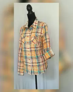 Blusa estilo Shirt c/estampado de flores miniatura y tonos multicolor, cuello clásico c/solapas, cierre p/botonadura frontal, 2 bolsos frontales plastrón c/solapa, manga terminada en puño y tira para convertir a 3/4. Talla G. Dimensiones cms: 40.5 hombro, 52.5 axila, 51 cintura, 55 zona baja, 66 largo, 67.5 largo manga. 100% algodón. P/lavado en casa.***Esta marca maneja prendas de extraordinaria calidad, su algodón es orgánico y soporta ciclos de lavado en máquina sin problemas, no se deslavan los estampados y las telas salen casi sin arrugas.***