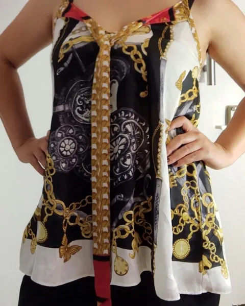 Blusa estilo Versace. Blusa de tirantes estampada , blusa super bonita y moderna, con jeans se ve super cool . La.modelo es talla M y pesa 66kg.