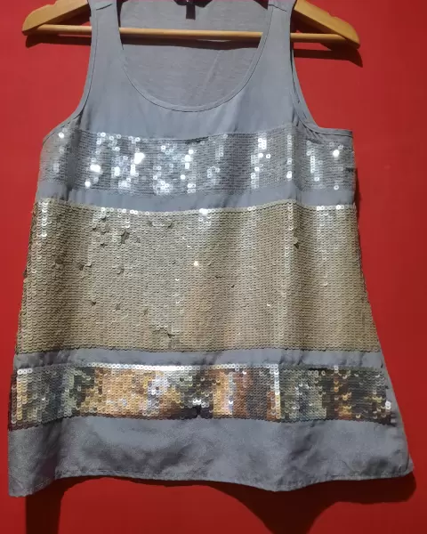 Blusa EXPRESS Lentejuelas gris. NUEVA!! Sin detalles , perfecta para salir , llamativa e ideal para resaltar cualquier look. VISITA MI PAGINA PARA PRENDAS DE MARCA ,NUEVA Y EN EXCELENTE ESTADO.