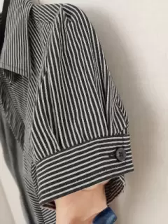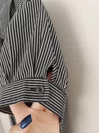 Blusa marca Express, tela rayada en combinación gris y negro, comprada en New York con mucha vida por vestir.Talla M