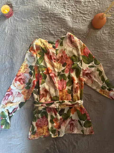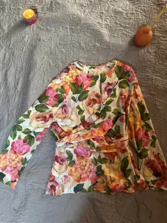 Elegante blusa floral, con detalle cruzado, horma Perfecto la cintura. Cierre lateral