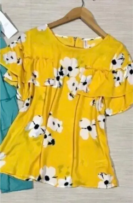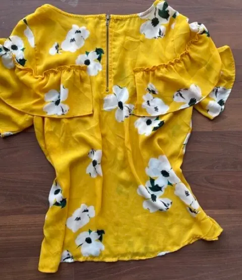 🌻bonita blusa amarilla con flores , cierre en la espalda. Es casual y elegante muy linda . Talla M