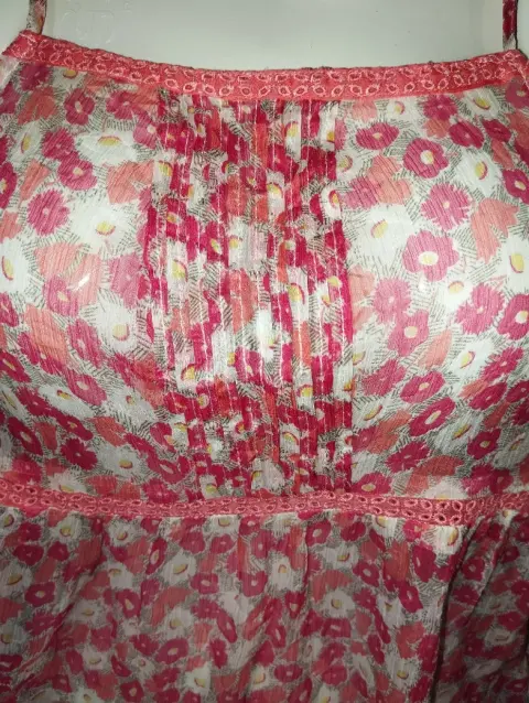Bonita blusa de tirantes, floreada, tela transparente, fresca, no estira, cuenta con detalle drapeado en el pecho así como detalle de encaje que le da una forma muy bonita. Marcada como talla XS , puede quedar hasta M. Medidas en la ultima foto🥰 ideal para un outfit casual 🥰