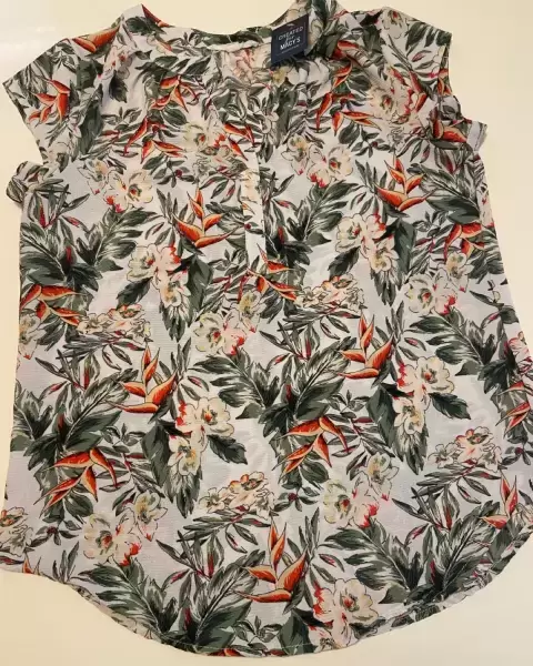 Blusa floreada. Blusa manga corta, cuello en V, tela vaporosa, muy cómoda