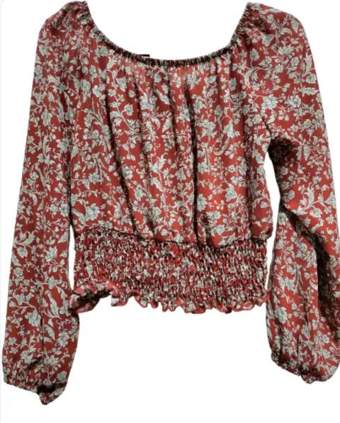 Blusa de manga larga floreada hasta el ombligo, ideal para usar con jeans. Está en perfecto estado. Es talla G pero como es hasta el ombligo pareciera que es talla S.